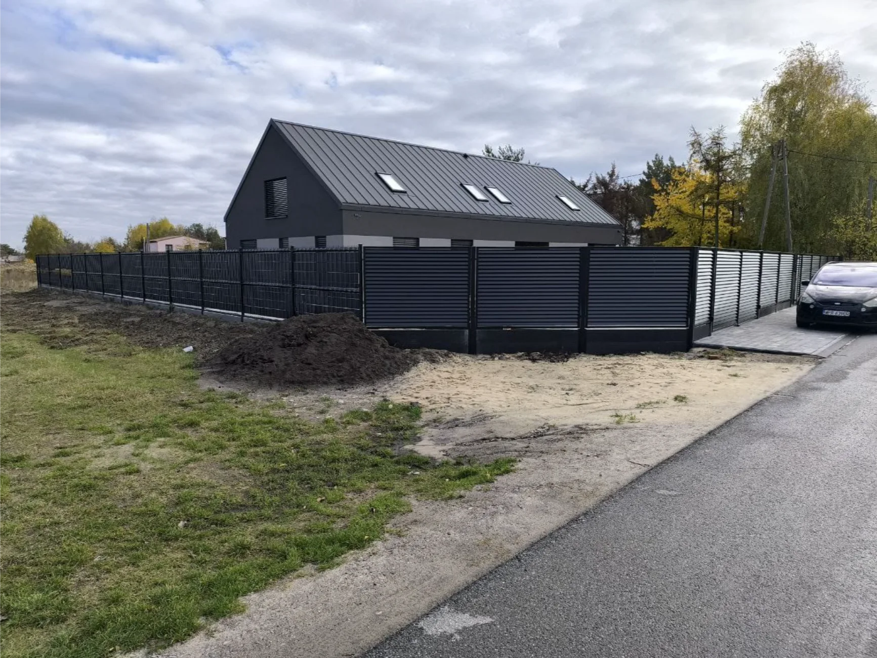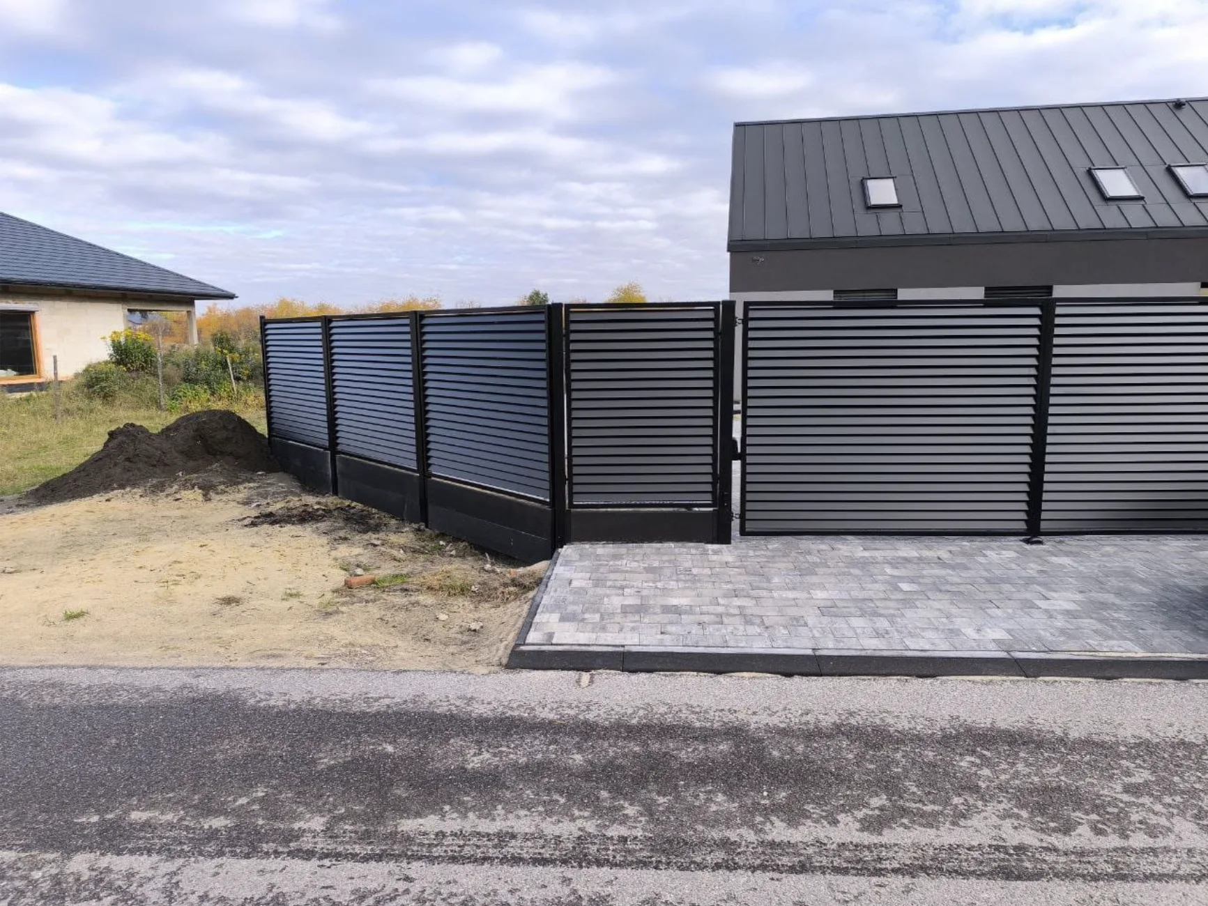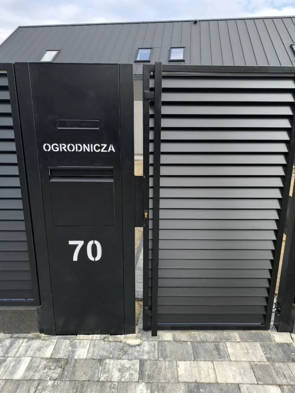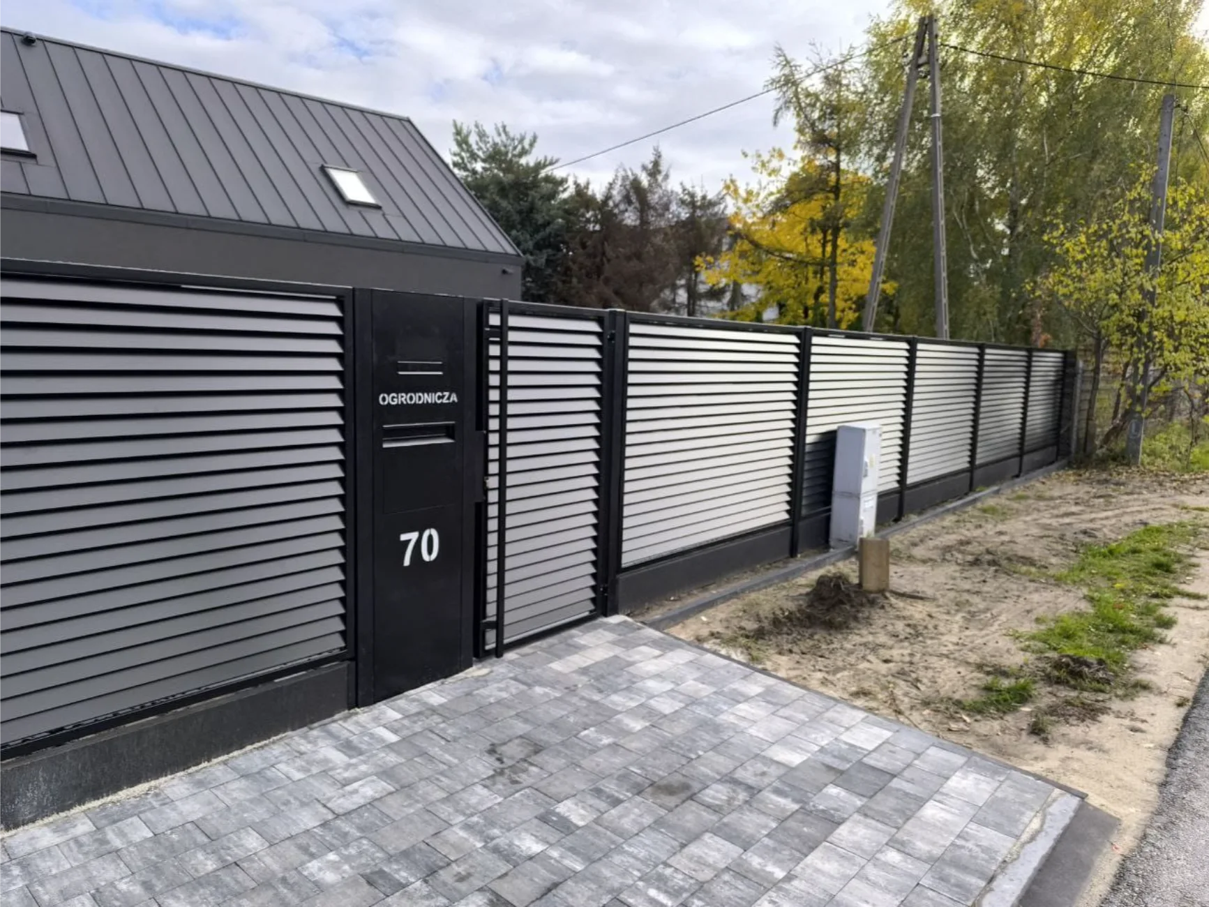 Nowoczesne ogrodzenie żaluzjowe z bramą i furtką