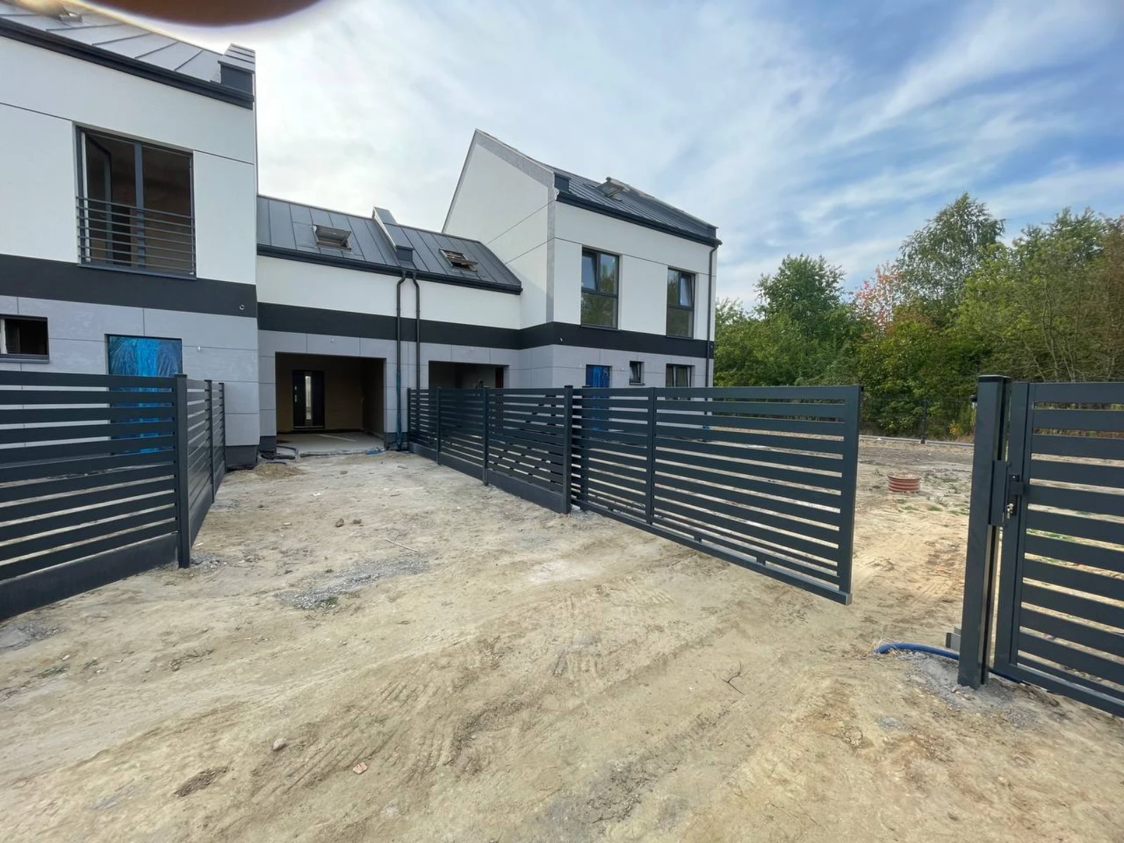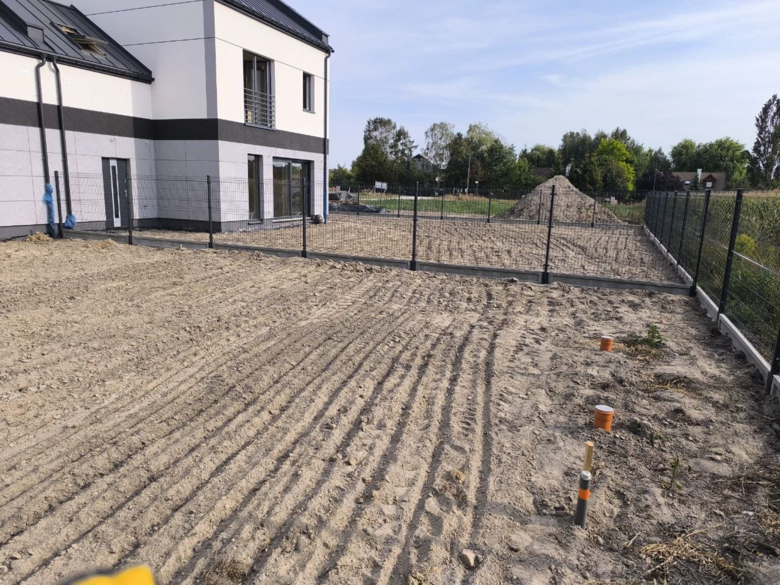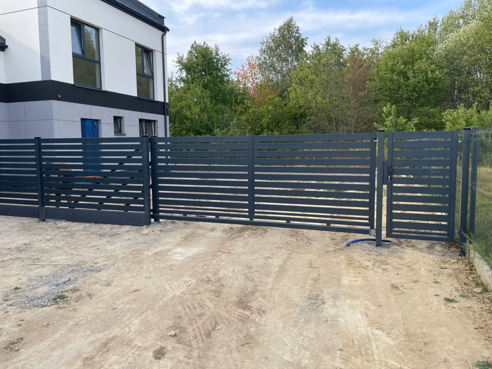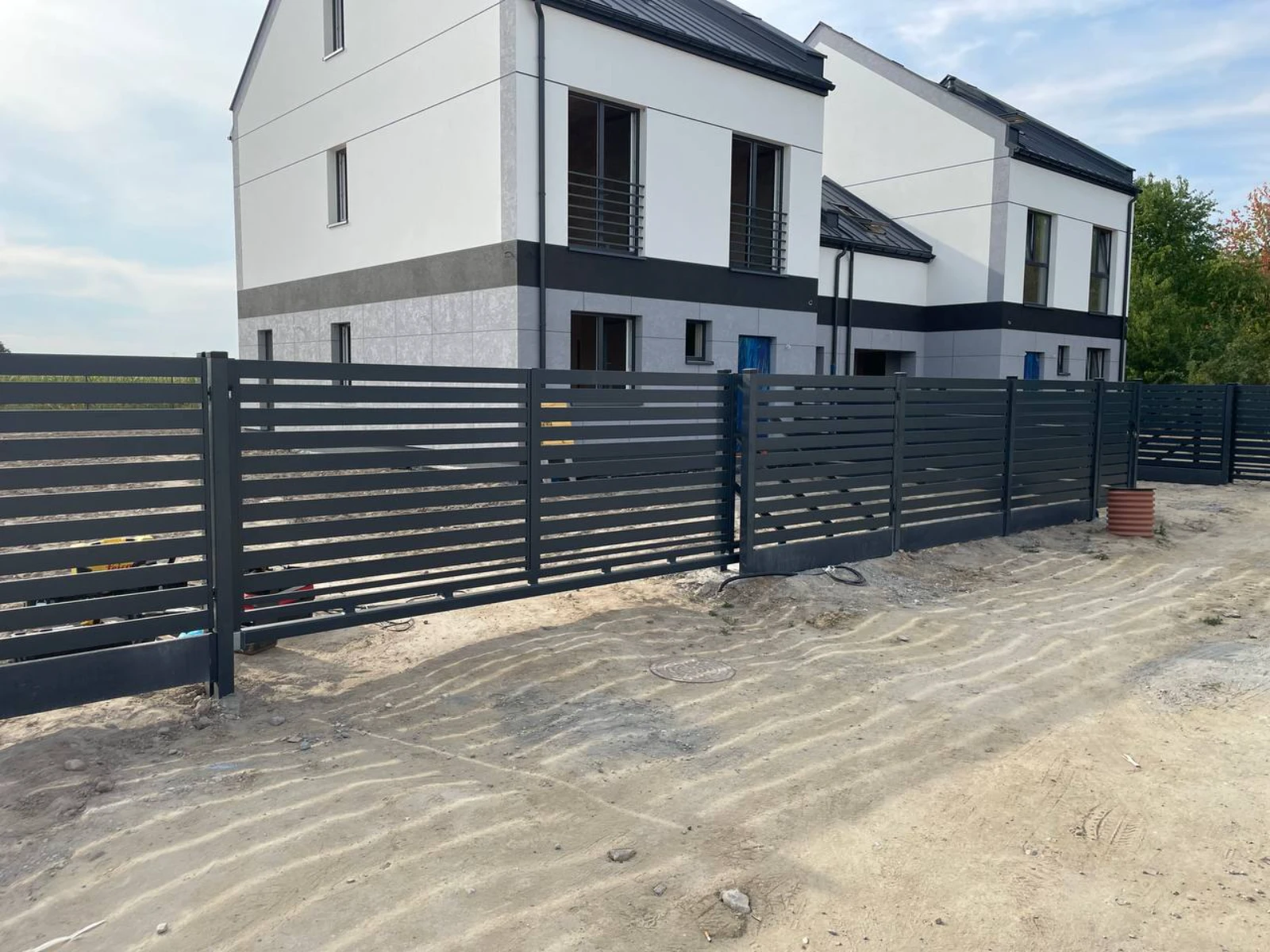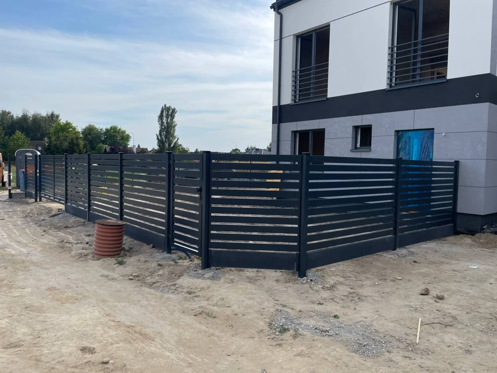 Ogrodzenie frontowe palisadowe w połączeniu z ogrodzeniem panelowym od strony bocznej i tylnej.