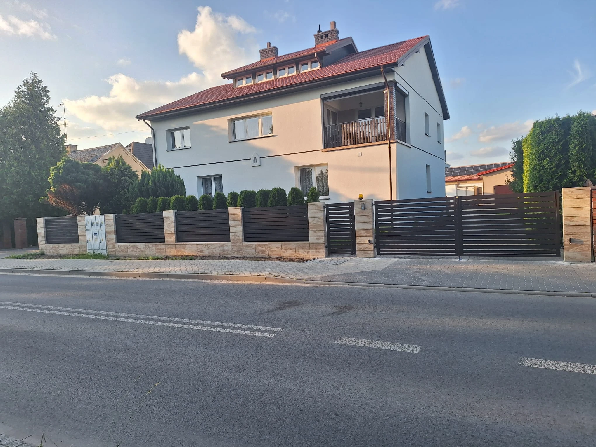 Ogrodzenie palisadowe osadzone na bloczkach ogrodzeniowych