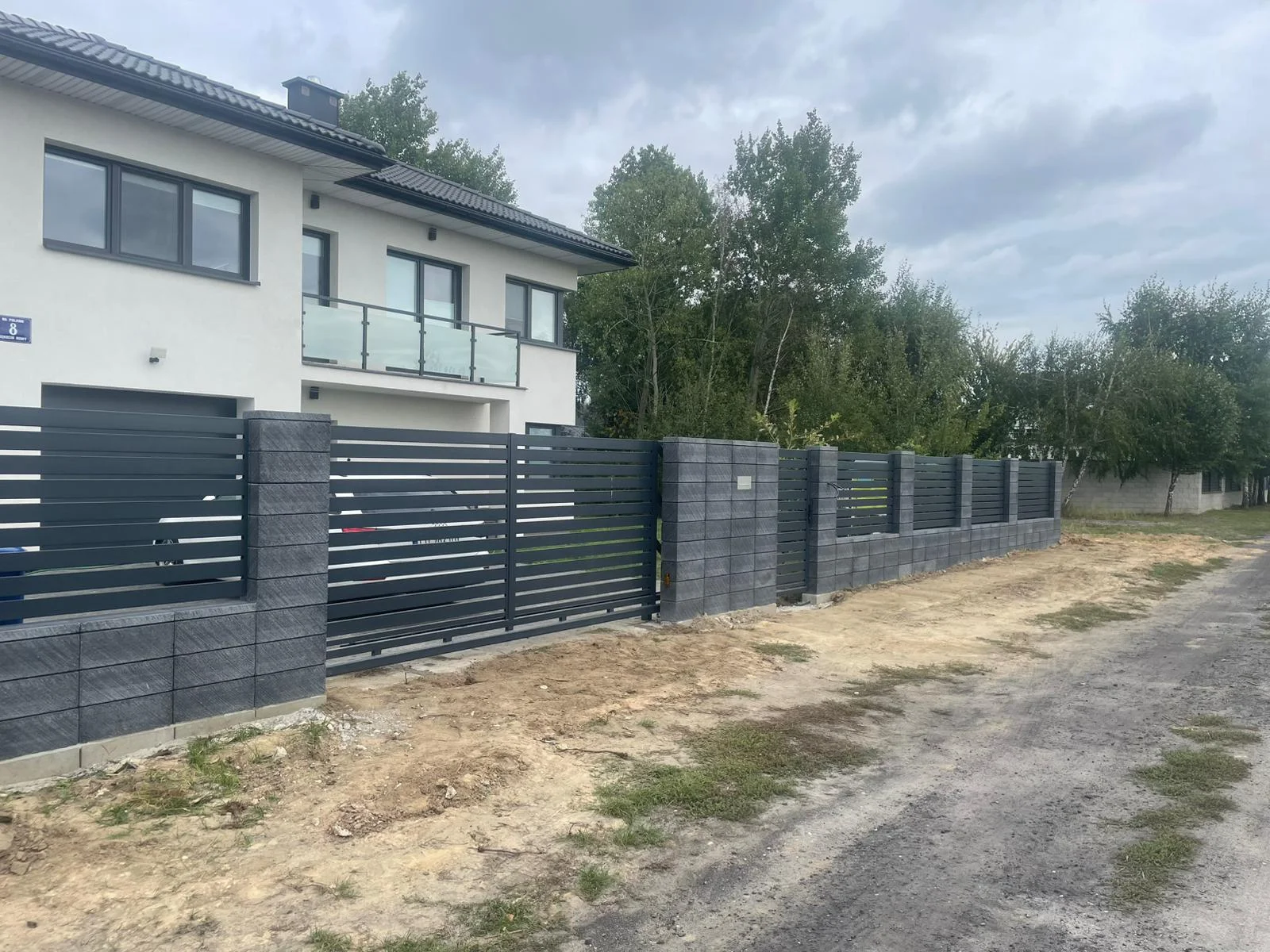Ogrodzenie palisadowe poziome na bloczkach betonowych