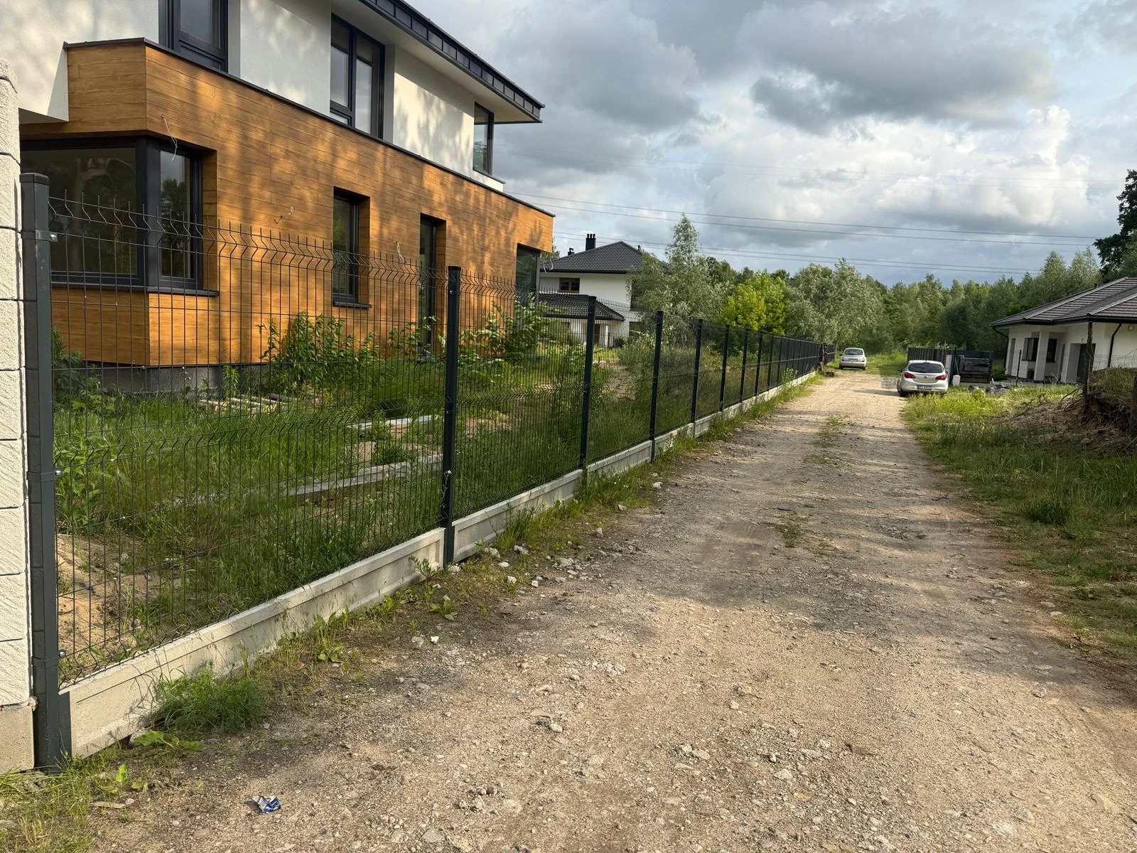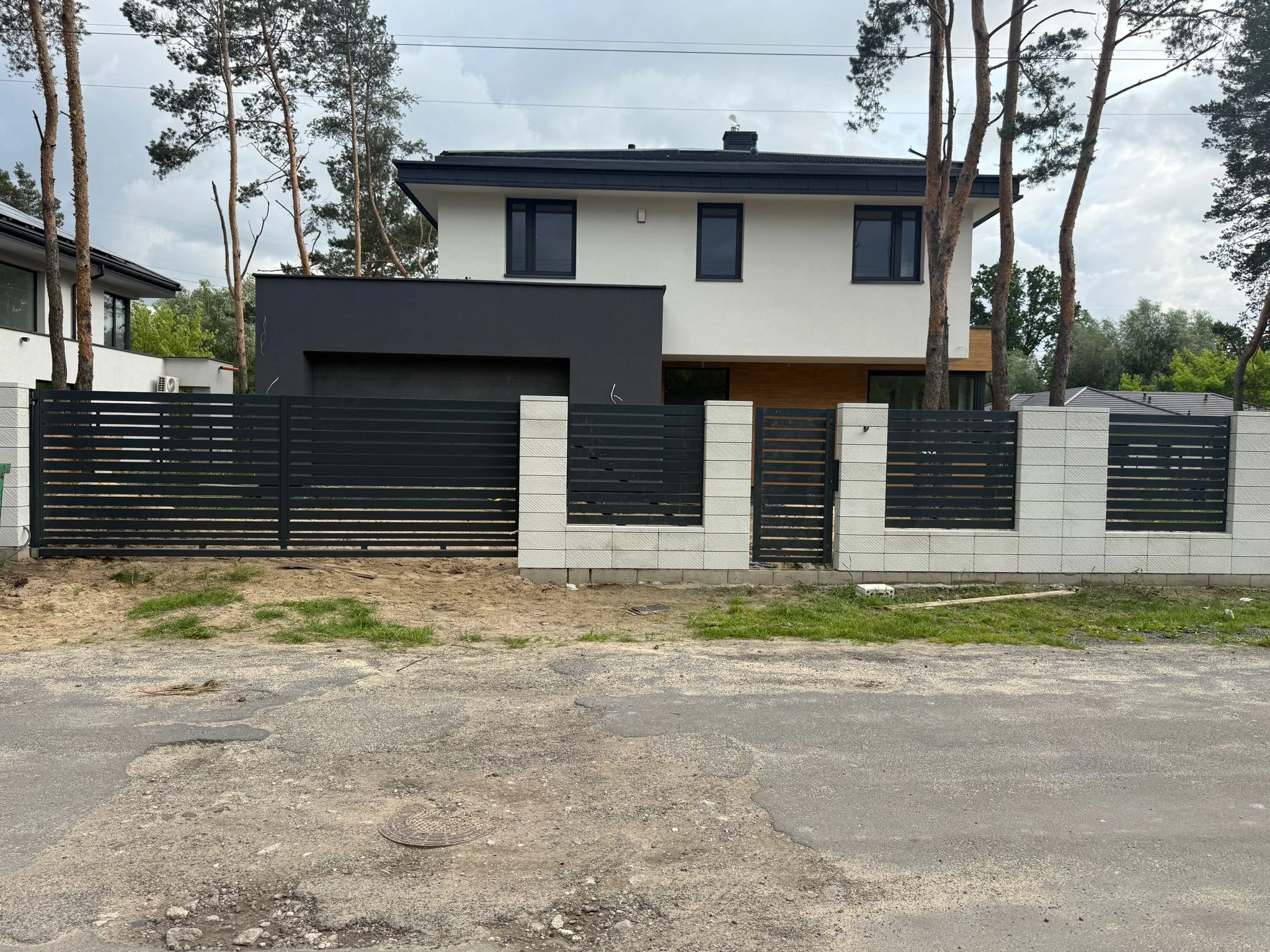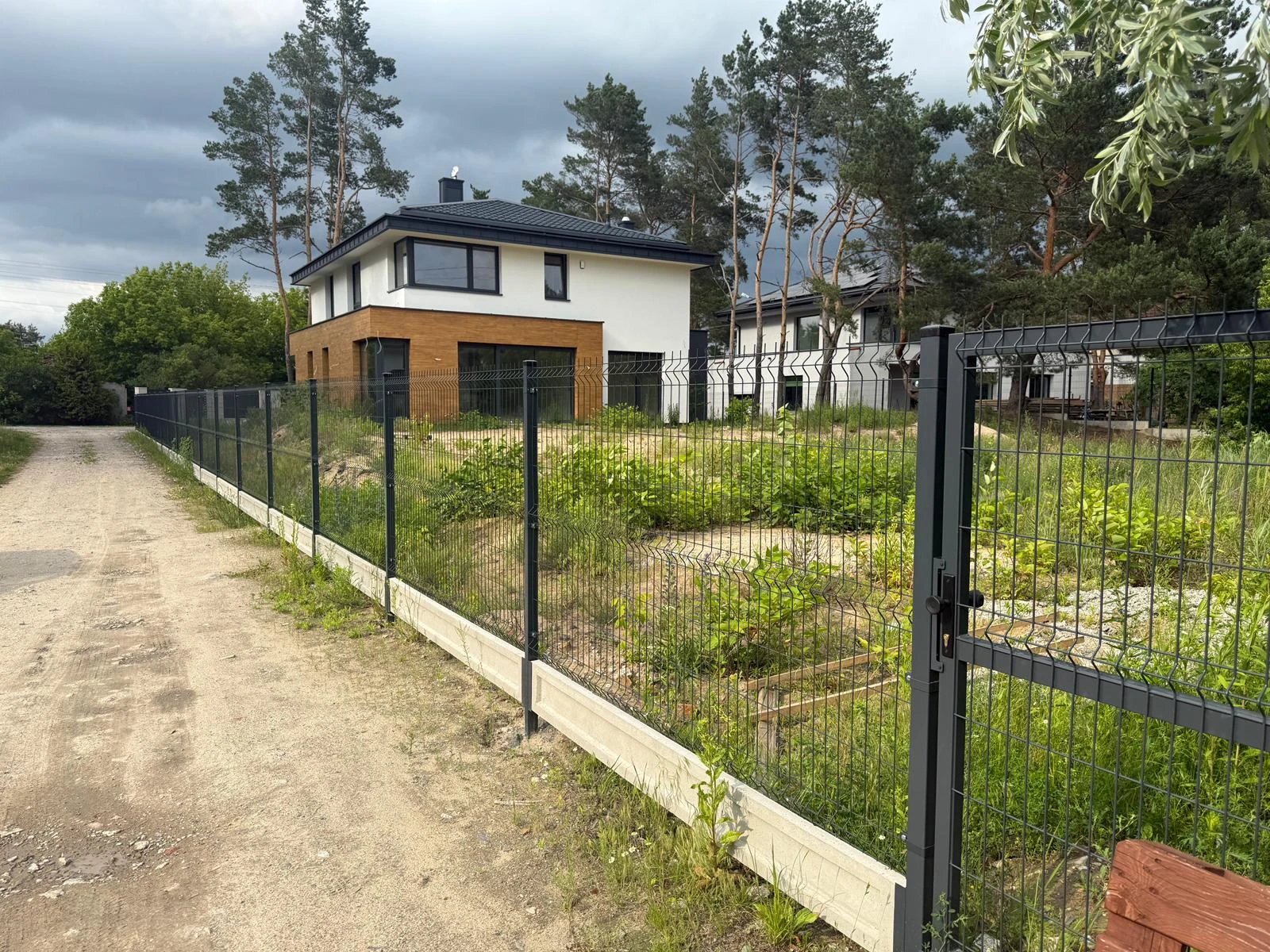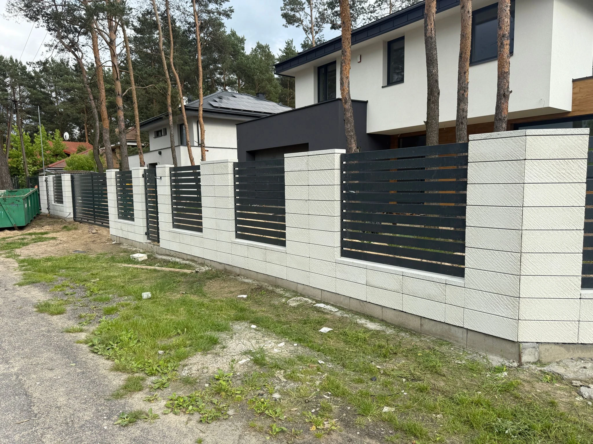 Ogrodzenie palisadowe z bramą i furtką osadzone na murku